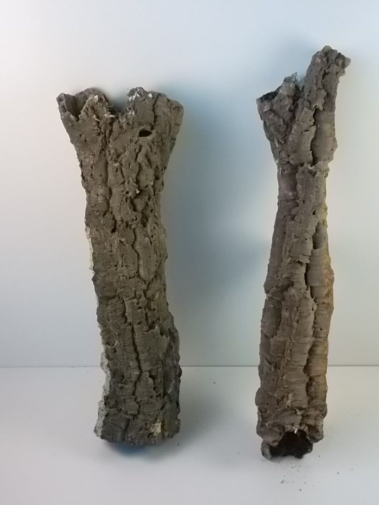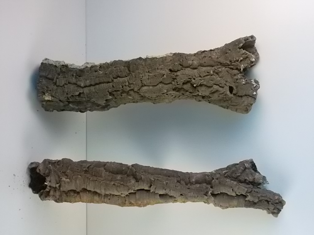 1.(links) Länge ca. 79 cm, Lochdurchmesser unten ca. 7 x 6 cm, Ausgänge ca. 2-4 cm