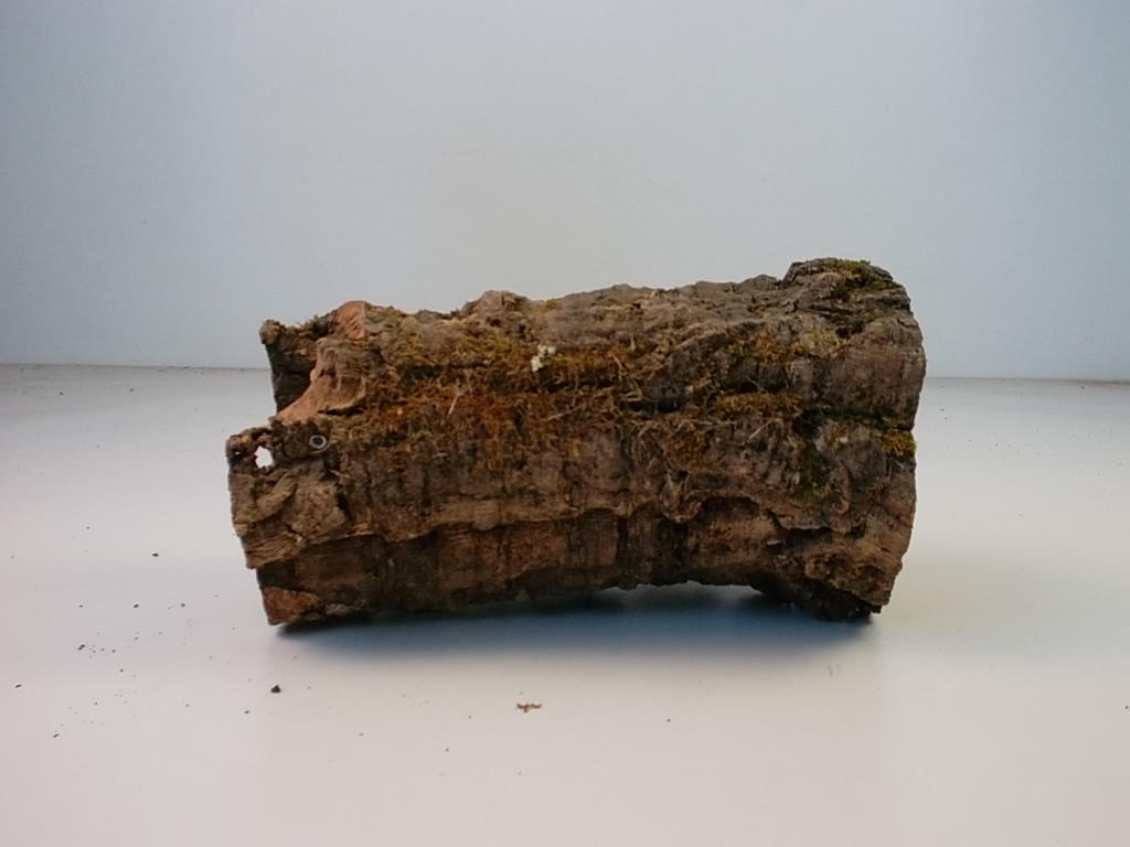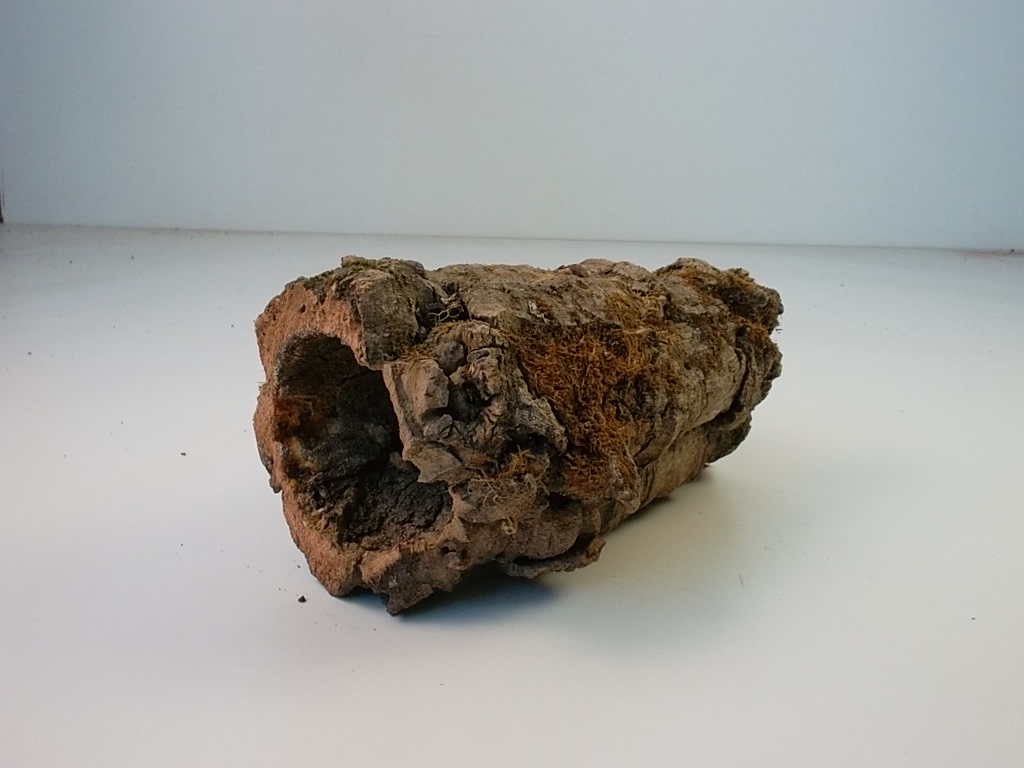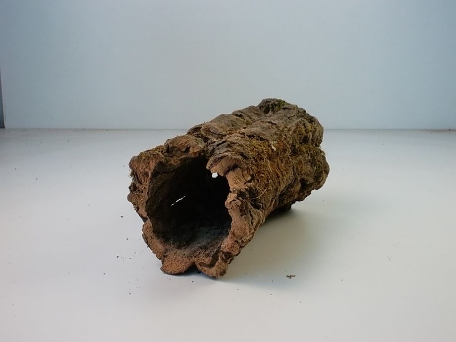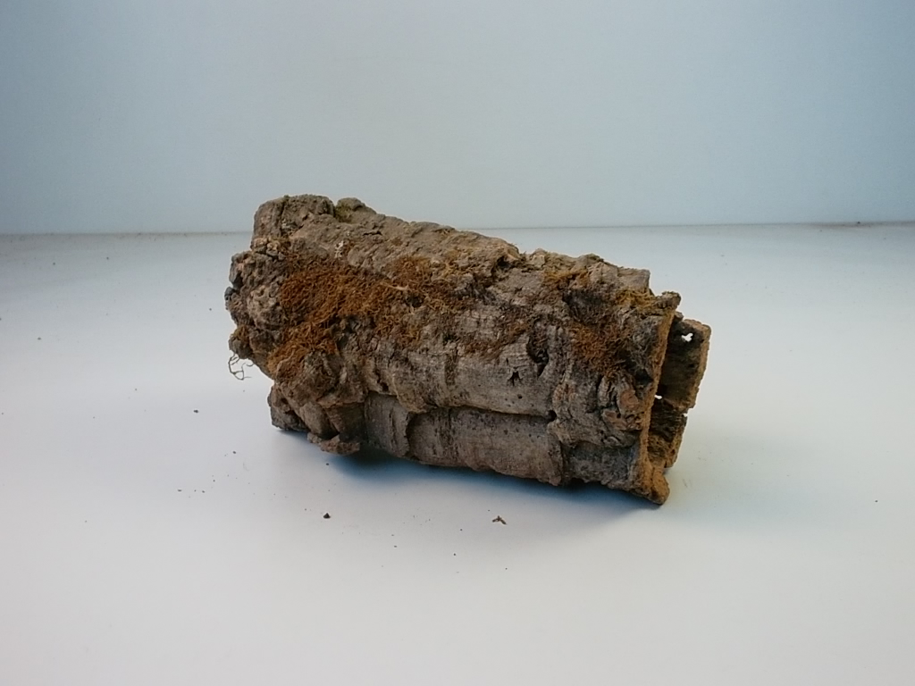 Kleine Korkröhre mit Moosbewuchs.